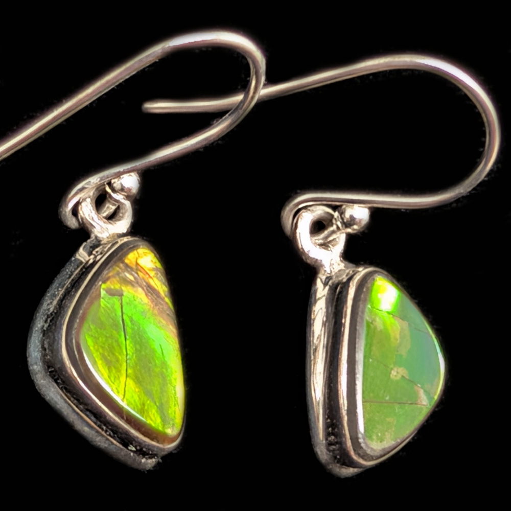Ammolite Fossil Triangular Sterling Silver Earrings