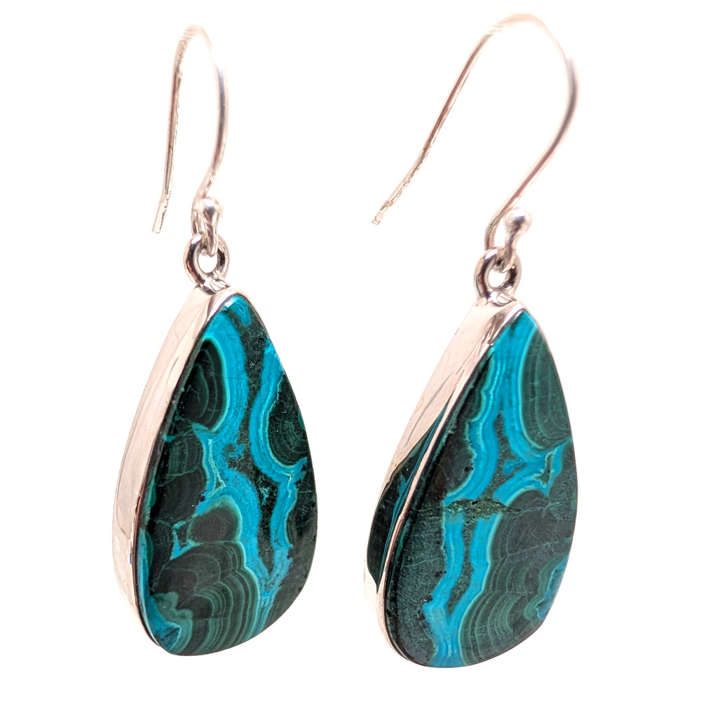 Chrysocolla Malachite Teardrop Sterling Silver Earrings