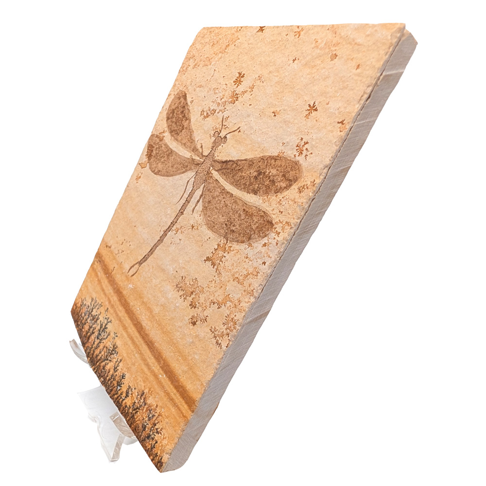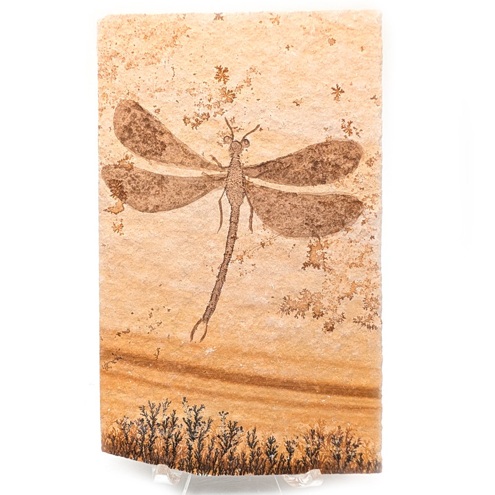 Dragonfly fossil from Solnhofen, Germany. Species Stenophlebia latreilli, with dendrites on both sides.