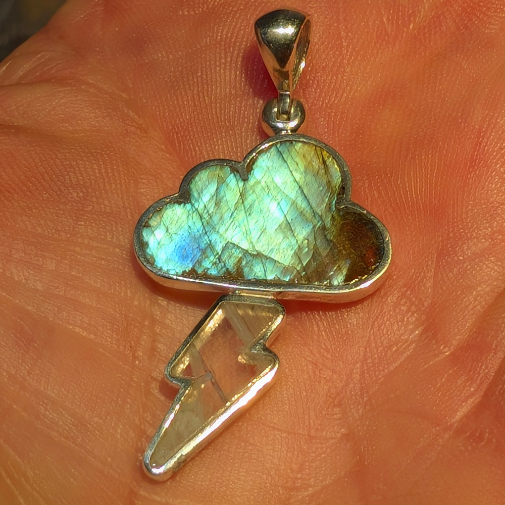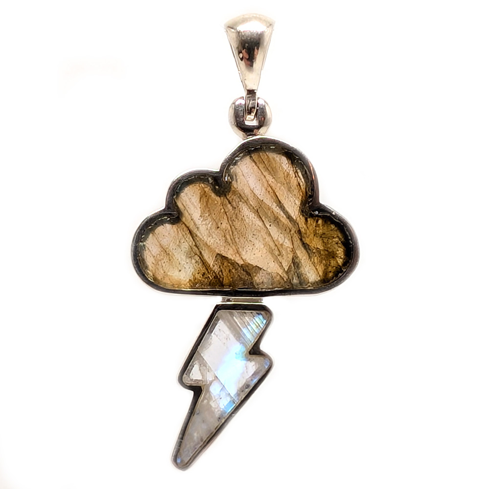 Labradorite Cloud & Moonstone Lightning Sterling Silver Pendant