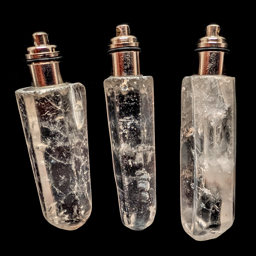 The colorless, transparent variety of quartz is composed of silicon dioxide, the most common mineral in Earth’s crust after ice and feldspar. The name “rock crystal” emerged in the Middle Ages to differentiate it from colorless glass. The Greeks called water-color crystals krystalos, hence the name “crystal.” “Quartz” comes from Old German, but its origins are unknown. Metaphysically, quartz is used for power, communication, and cleansing. Found worldwide, most fine quartz comes from Arkansas, Brazil, and Madagascar |