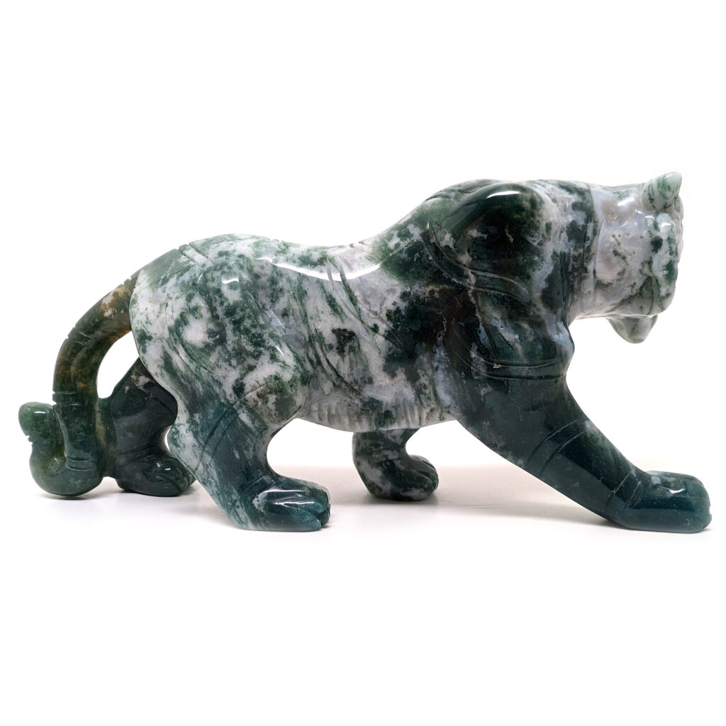 Moss Agate Lioness Carving
