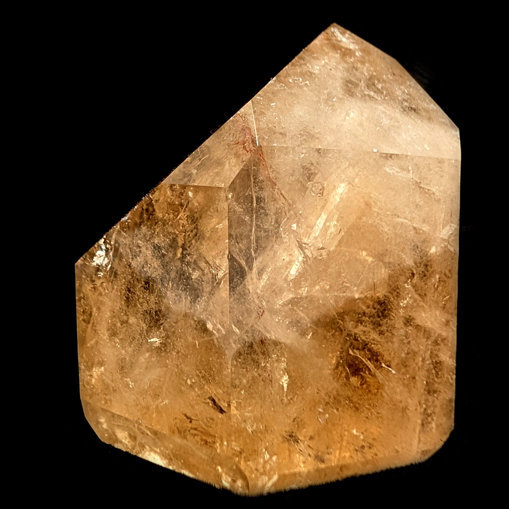 A short, squat, 6-sided natural citrine tower from Brazil.