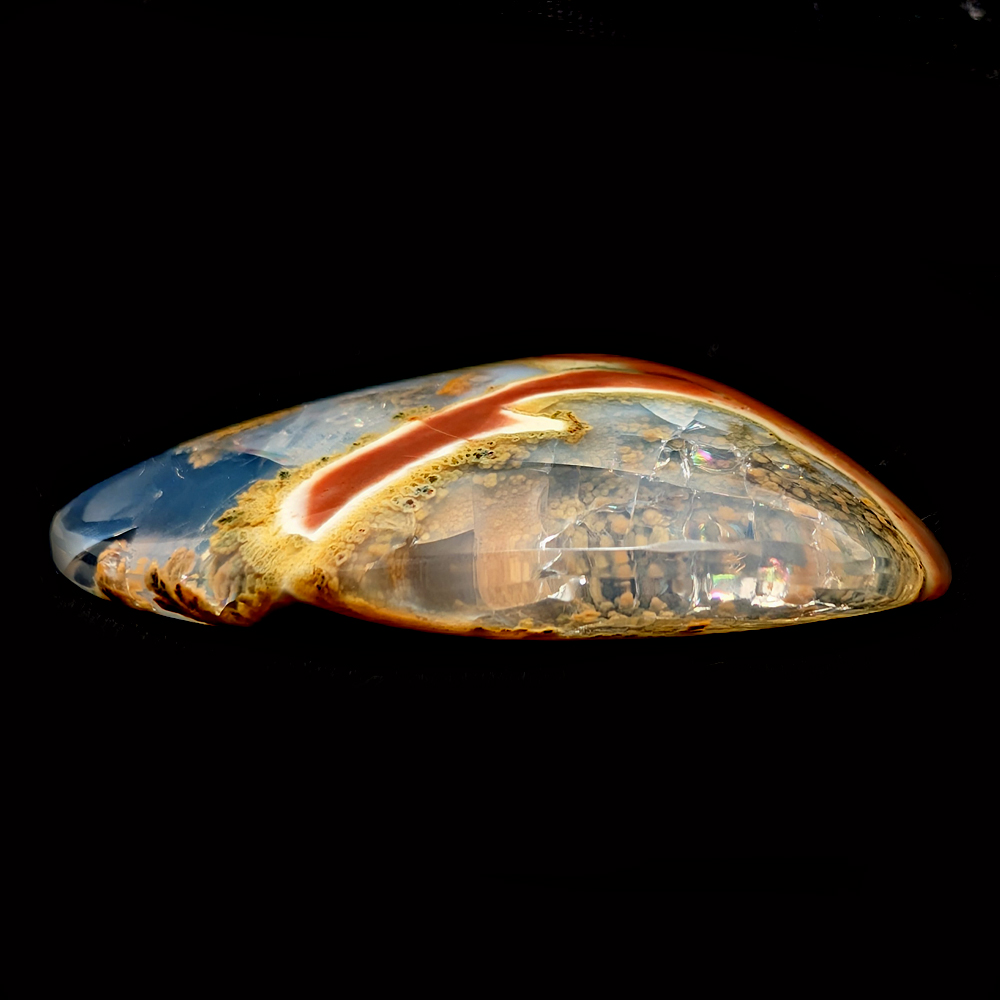 A polished freeform piece of transparent Oregon Opal in matrix from Opal Butte, Oregon. This material is scarce and hasn’t been mined in decades. Cut and polished by the miner.