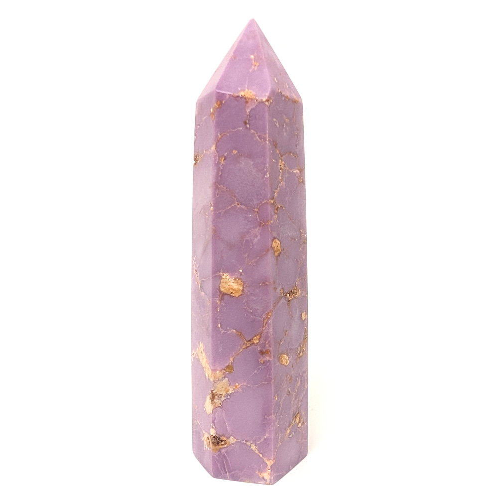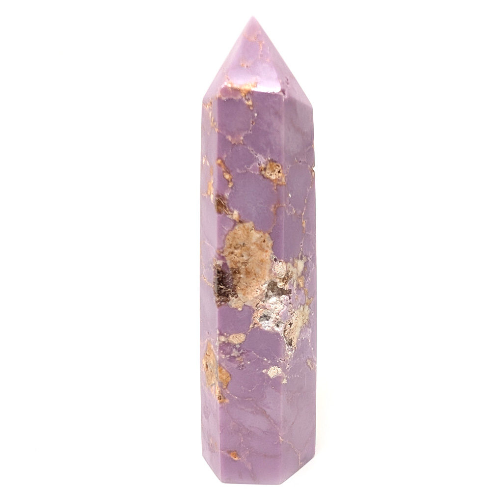 A 6-sided phosphosiderite tower from Peru, with deep and rich tones of pinkish purple.