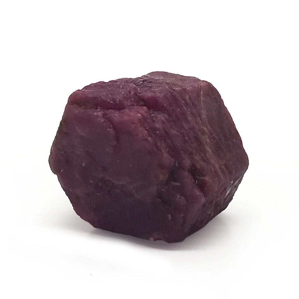 A rough ruby crystal from India with varying layers of luster upon the crystal faces.